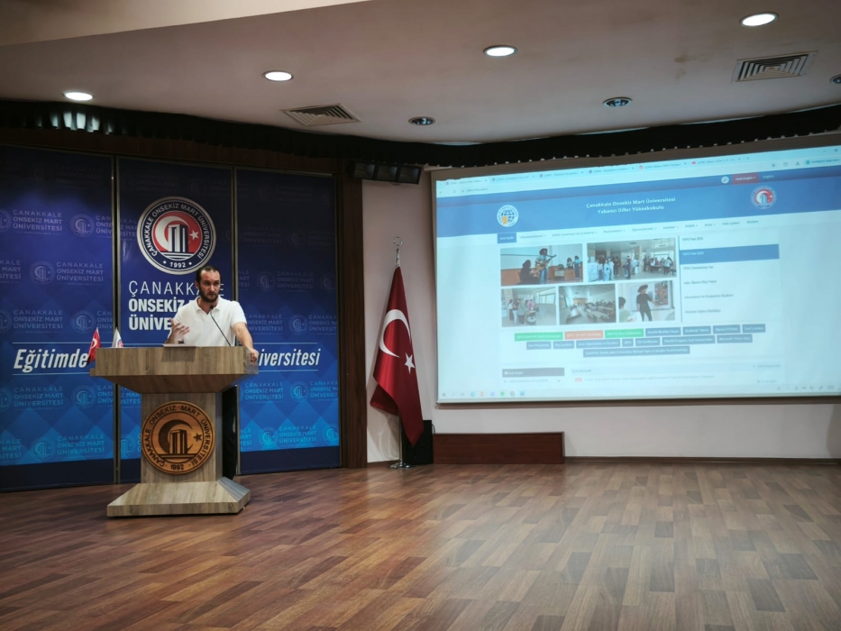 Oryantasyon Programı YDYO Müdür Yardımcısı Öğr. Gör. Dr. Gökhan HINIZ’ın açılış konuşmasıyla başladı. Öğr. Gör. Dr. Gökhan HINIZ YDYO hazırlık programı ve işleyişi, internet sayfası, kur sistemi, öğrenci el kitabı, sınıf danışmanları, dersler, ders kitapları, ölçme değerlendirme kriterleri, Kampüs Hayatı, ÇOMU Kütüphanesi, ÇOMÜ Psikolojik Danışmanlık Rehberlik Birimi ve Üniversitemiz ve Yüksekokulumuzun kalite süreçleri konularında öğrencilerimize bilgi verdi.